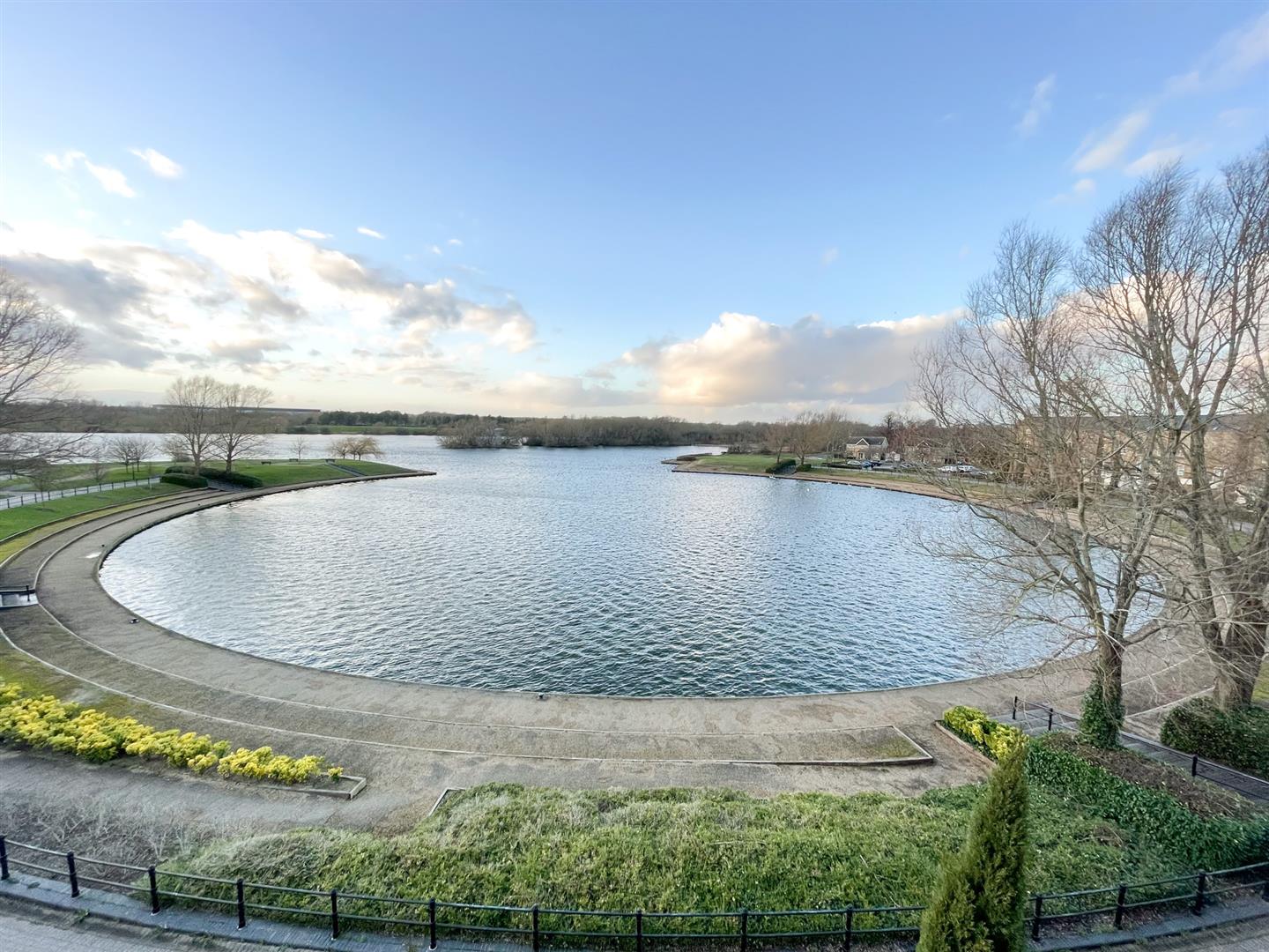 Watsons are delighted to offer for let this spacious apartment over two floors, providing fantastic elevated views across Caldecotte Lake. The accommodation comprises: Entrance hallway, triple aspect L shaped living room, generous kitchen (with oven, hob, fridge, freezer and dishwasher), shower room / utility area (with washing machine), bedroom three with built-in wardrobe, stairs to top floor, spacious master bedroom with dressing area / built-in wardrobe units and ensuite bathroom, bedroom two with en-suite shower room. To the exterior is a large garage with separate storage area, and off road parking. Further benefits include gas central heating, double glazing, and security intercom system. The property is offered Unfurnished, and is available late December.*** FILE PHOTOGRAPHS USED FOR MARKETING ***